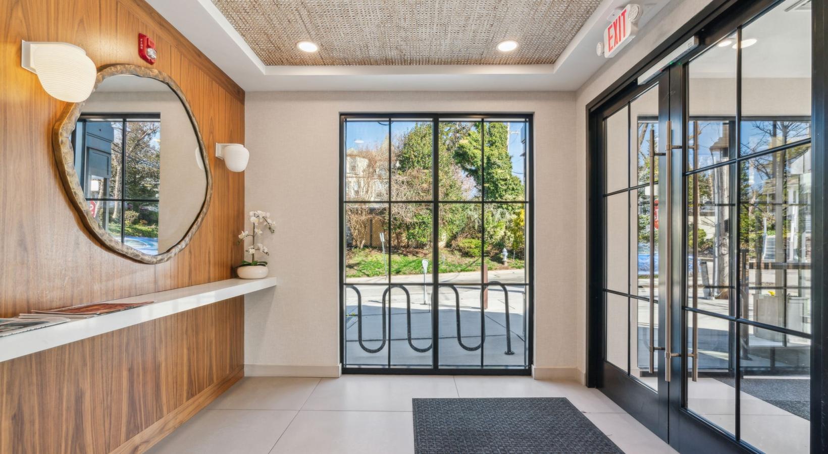 • a large room with a large mirror