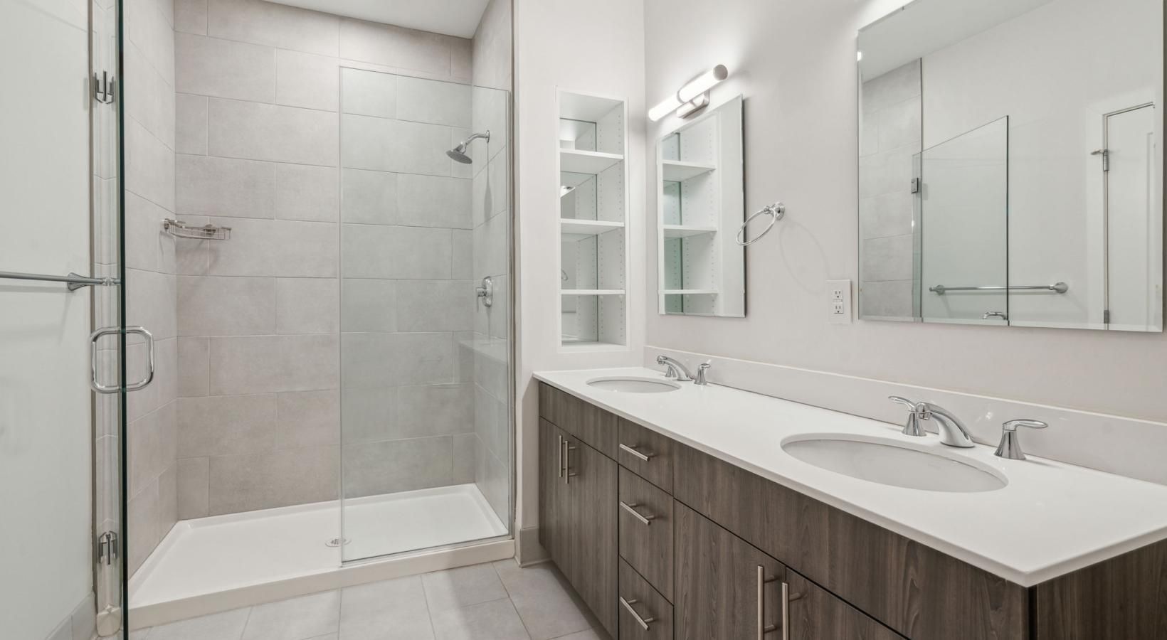• a bathroom with a glass shower