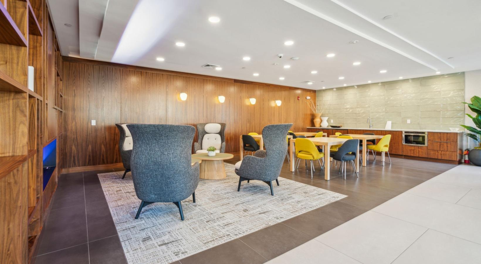 • a room with chairs and tables