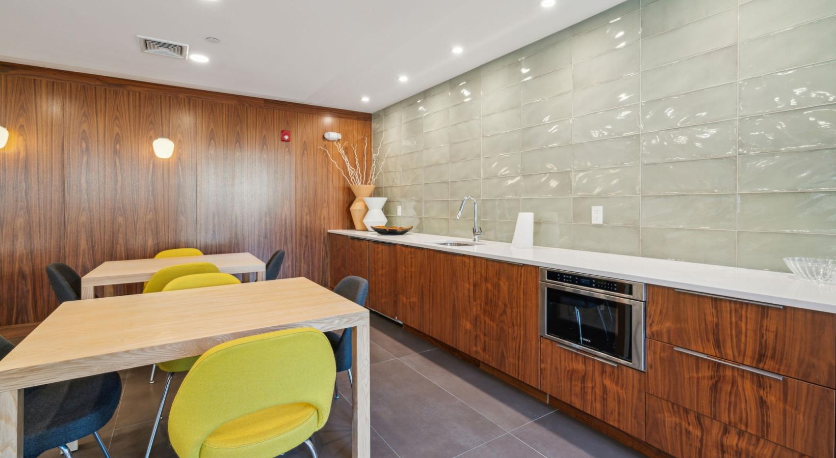• a kitchen with a table and chairs