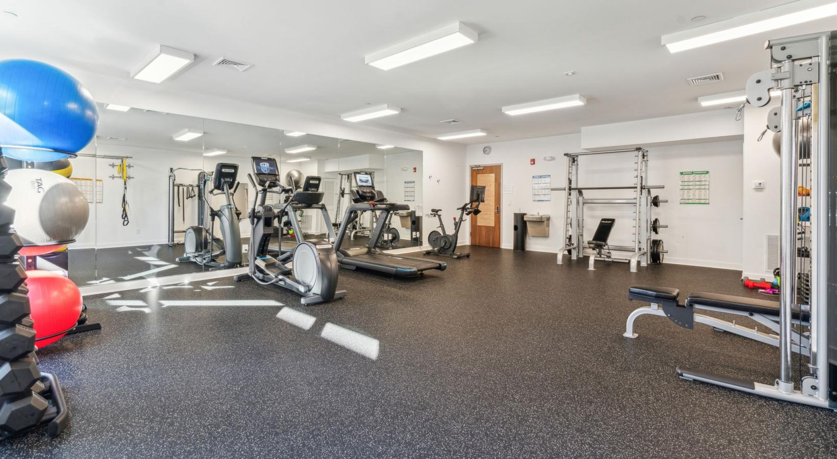 • a gym with exercise equipment