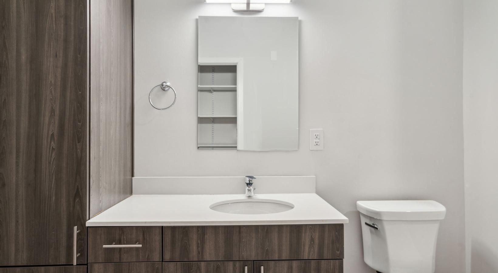 • a bathroom with a mirror and sink