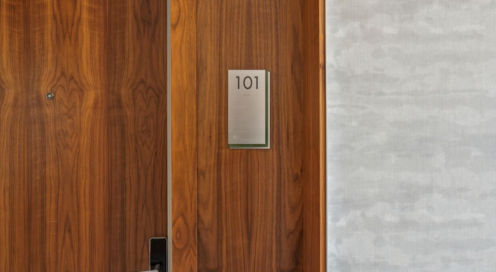 • a door with a sign on it